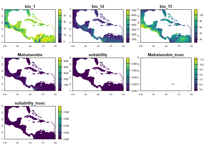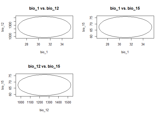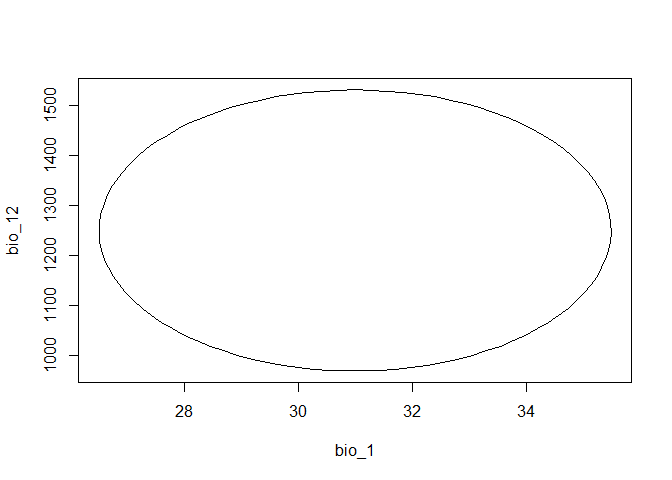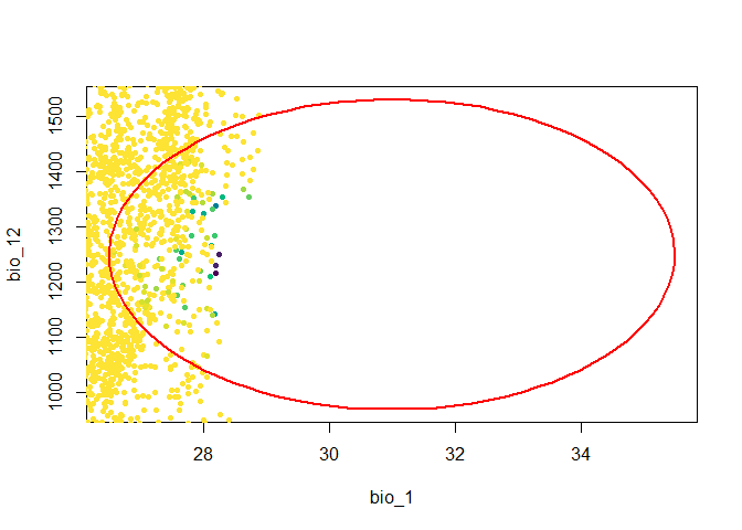 - Predict suitability — project the ellipsoid onto raster or data frame inputs