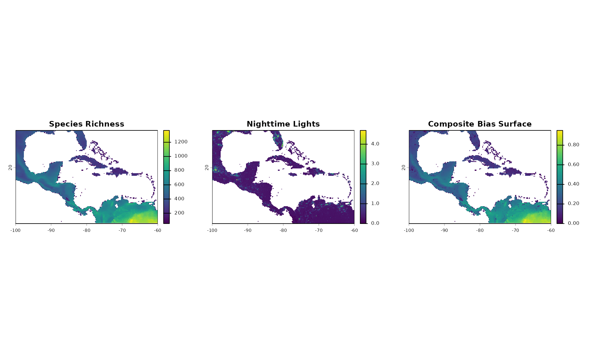 Raw bias proxies (e.g., species richness, nighttime lights, distance